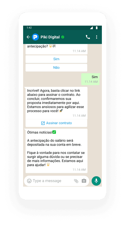 Não é necessário baixar nenhum aplicativo! Seus colaboradores terão acesso a todos os benefícios diretamente pelo próprio WhatsApp.